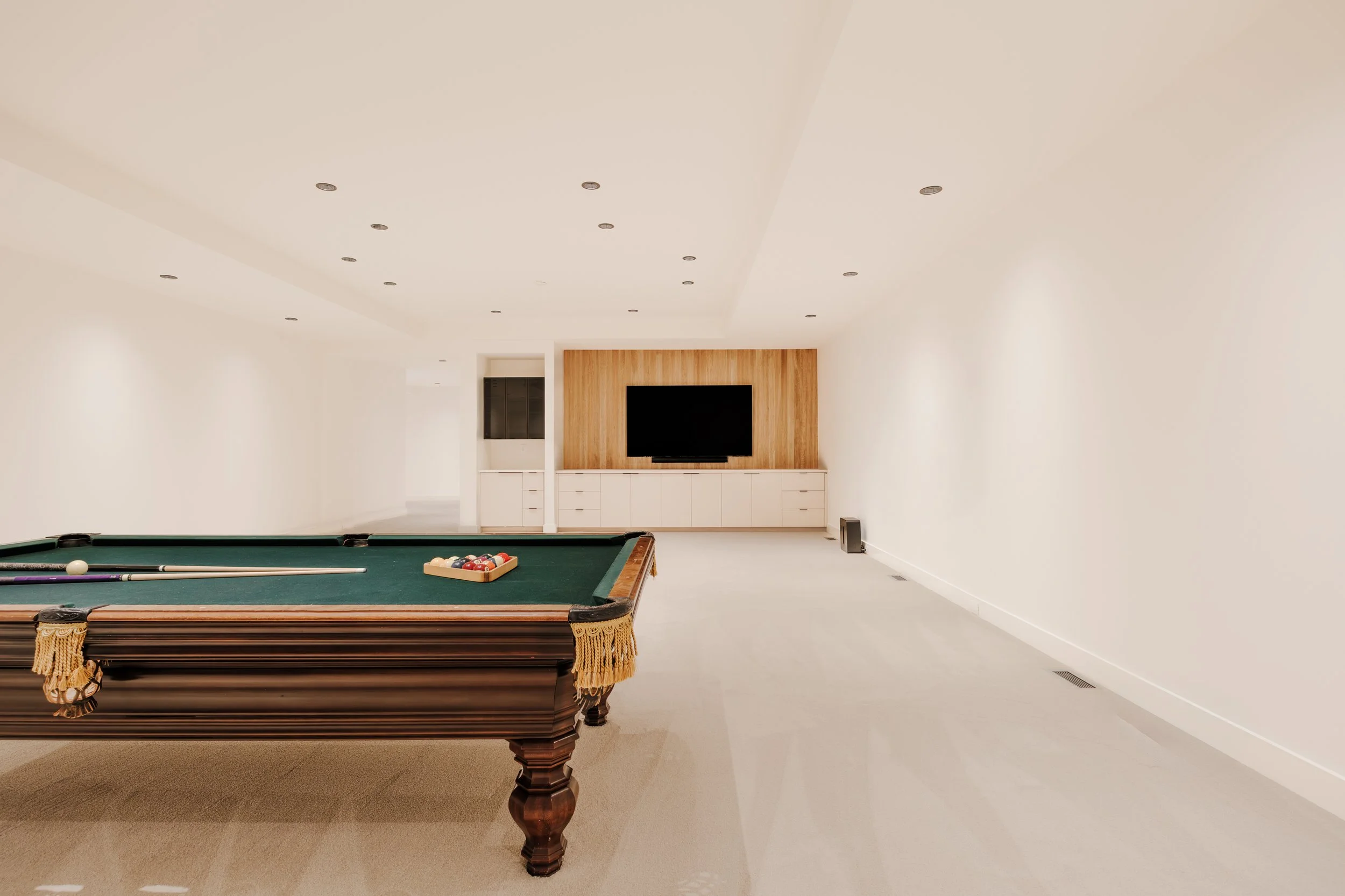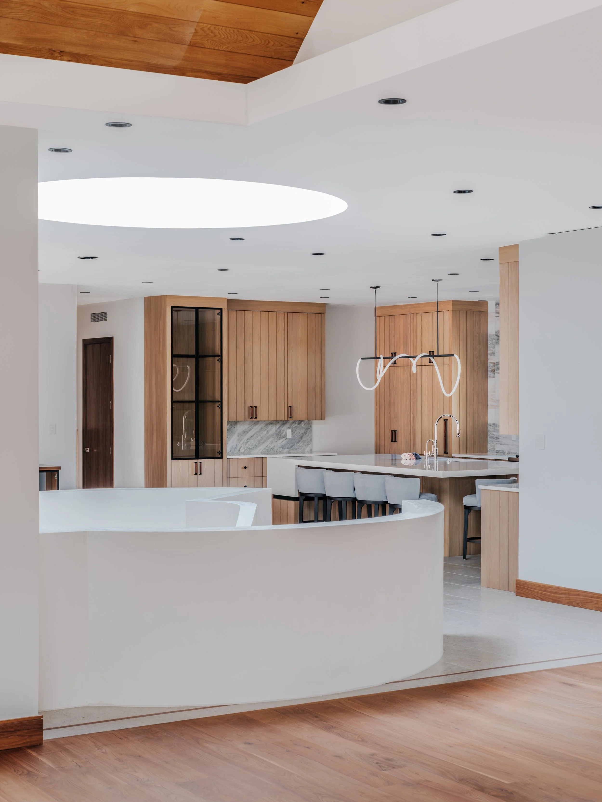 A tonal-minimalist palette blends contemporary and transitional elements, creating a home that feels both sophisticated and livable. Clean lines, curated materials, and layered textures establish a natural flow from the gallery-like living areas to the private bedroom wing and reimagined lower level.